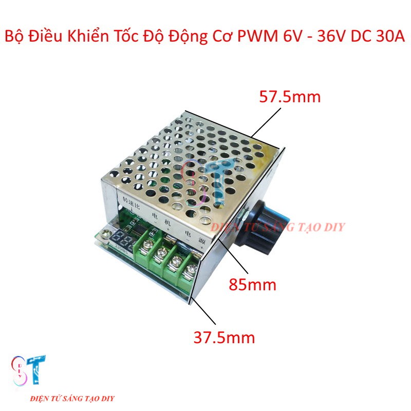 - Bộ điều khiển tốc độ động cơ pwm 6V – 36VDC 30A có led hiển thị tốc độ động cơ theo phần trăm hay bộ điều chỉnh điện áp, bộ điều chỉnh tốc độ động cơ pwm có thể điều chỉnh với núm xoay chiết áp.- Bộ điều khiển tốc độ động cơ pwm 6V – 36V DC 30A có vỏ nhiều lỗ để tản nhiệt, tản nhiệt tốt và tuổi thọ cao.