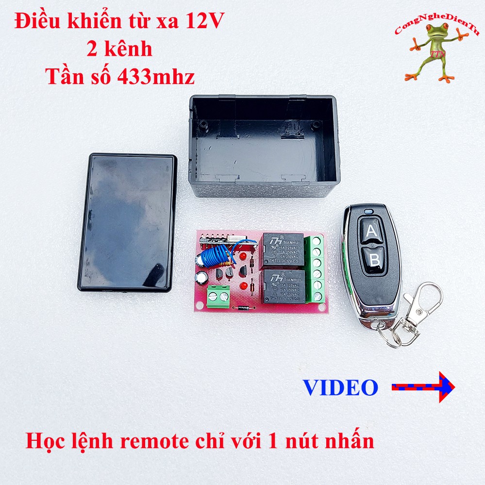 Bộ điều khiển từ xa 2 kênh 12v 433mhz tặng kèm hộp