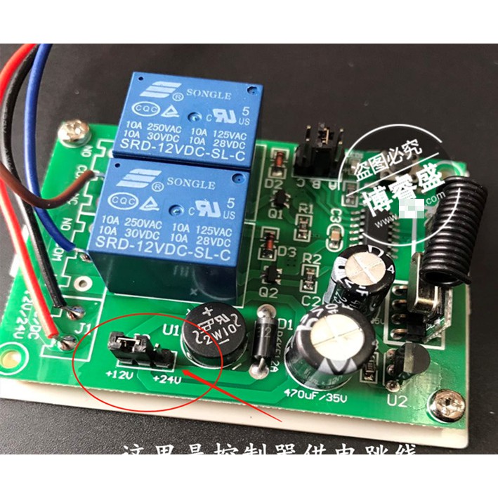 Bộ điều khiển xi lanh RF 433Mhz 2 relay từ xa