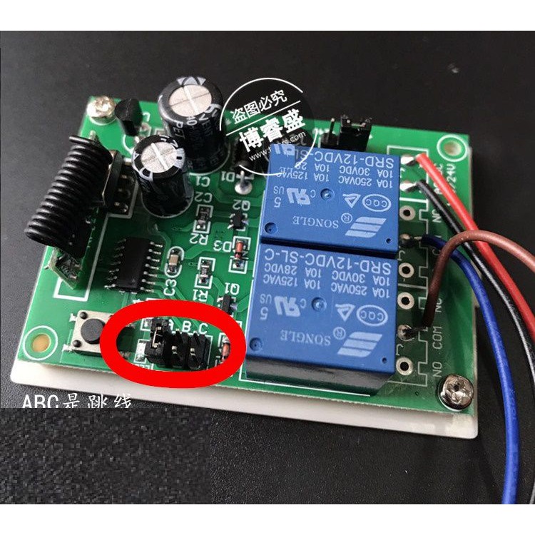 Chế độ khóa liên động: Nhấn nút A trên remote để đóng relay 1, nhấn nút A lần nữa relay không thay đổi. Nhấn nút B trên remote để đóng relay 2, đòng thời ngắt relay 2.