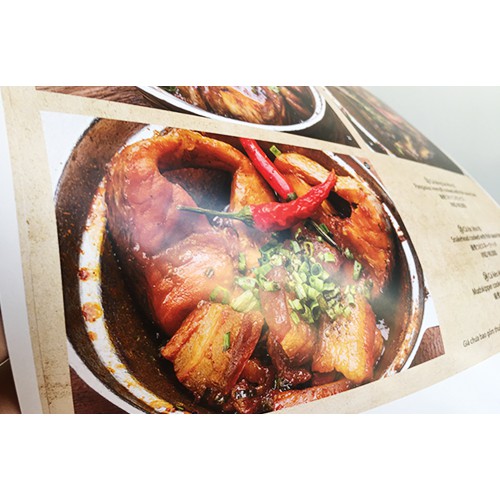 Làm menu treo tường, hình ảnh chất lượng đẹp, giống bìa tạp chí dày đẹp