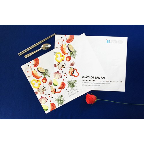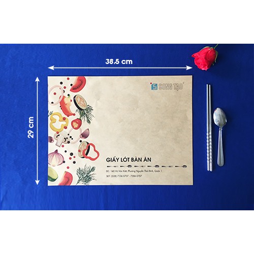 In Giấy lót bàn ăn THIẾT KẾ MIỄN PHÍChất liều giấy: Fort 70 gsm hoặc Kraft