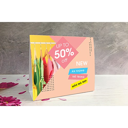 In Standee để bàn giá rẻ số lượng ítChất liệu: Couche 300 gsm