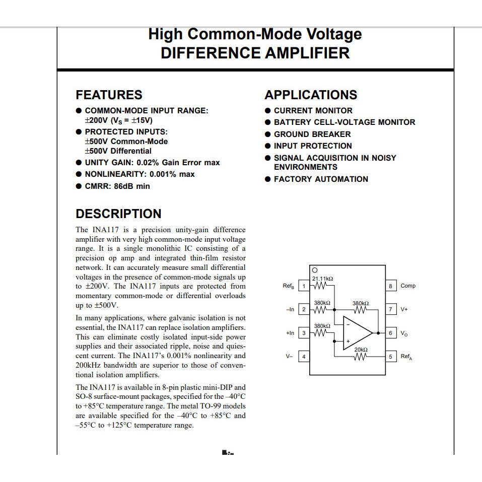 Giới thiệu INA117 INA117P Khếch đại vi sai (IC)
