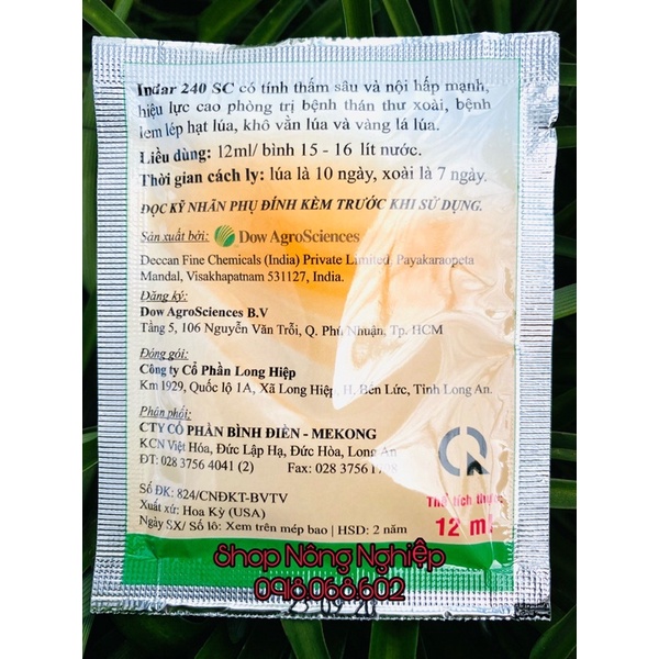Indar 240SC 12ml, chế phẩm của Mỹ phòng trừ bệnh Thán Thư cho cây.