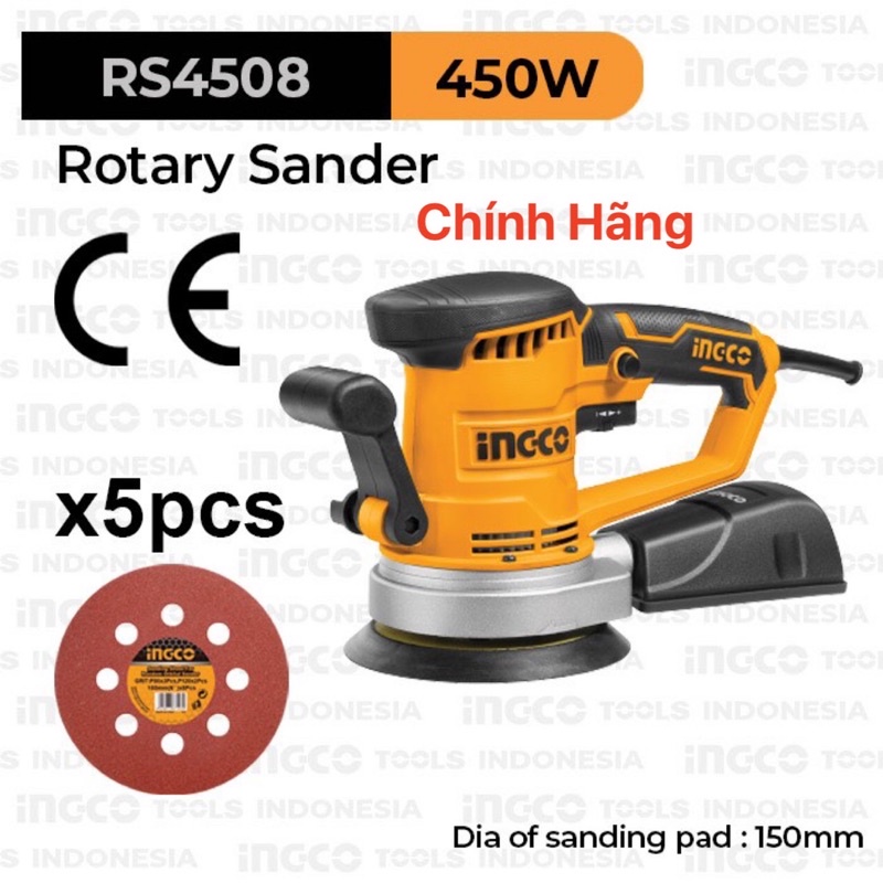 Nhà cửa & Đời sống > Dụng cụ & Thiết bị tiện ích > Dụng cụ > Giấy nhám, máy chà nhám và phụ kiện || INGCO Máy chà nhám tròn 450W RS4508 (Cam kết Chính Hãng 100%)Còn hàng