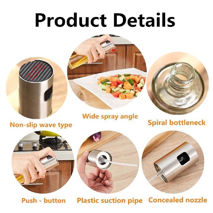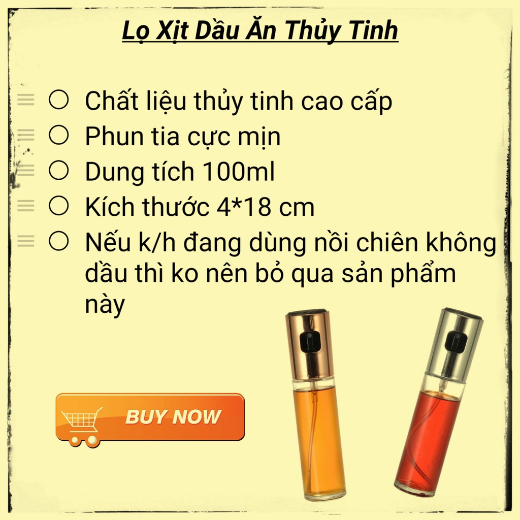Giới thiệu ⚡INOX 304⚡Lọ Xịt Dầu Ăn Thủy Tinh 100ml Dùng Cho Nồi Chiên Không Dầu, Chiên Rán Đồ Ăn, Nướng Đồ Ăn