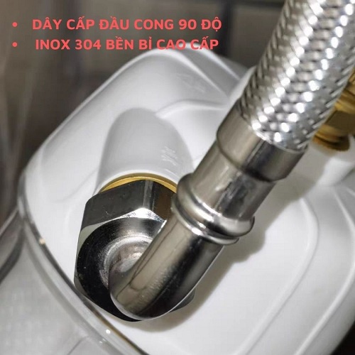 Giới thiệu [INOX 304 LOẠI 1] Dây cấp nước đầu cong 90 độ tiện dụng dễ lắp đặt