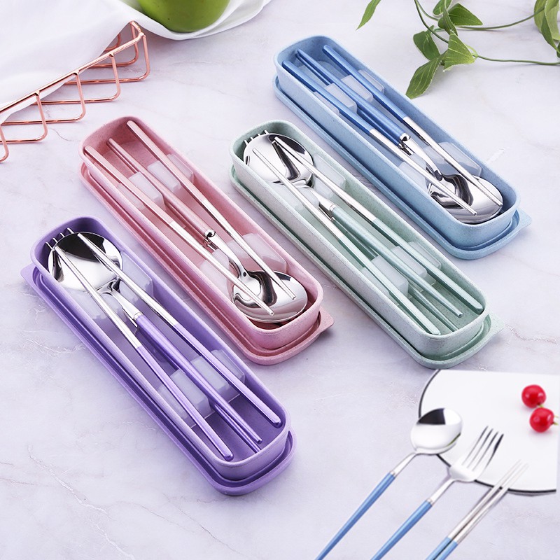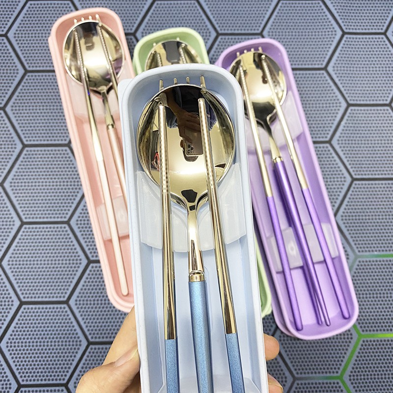 Nhà cửa & Đời sống > Bộ đồ bàn ăn > Bộ dao kéo || [ inox Cao Cấp ] Bộ Thìa Đũa Dĩa Cá Nhân Văn Phòng 3 Món Thép Không Gỉ SUS 304 Cỡ Lớn Cán DàiCòn hàng