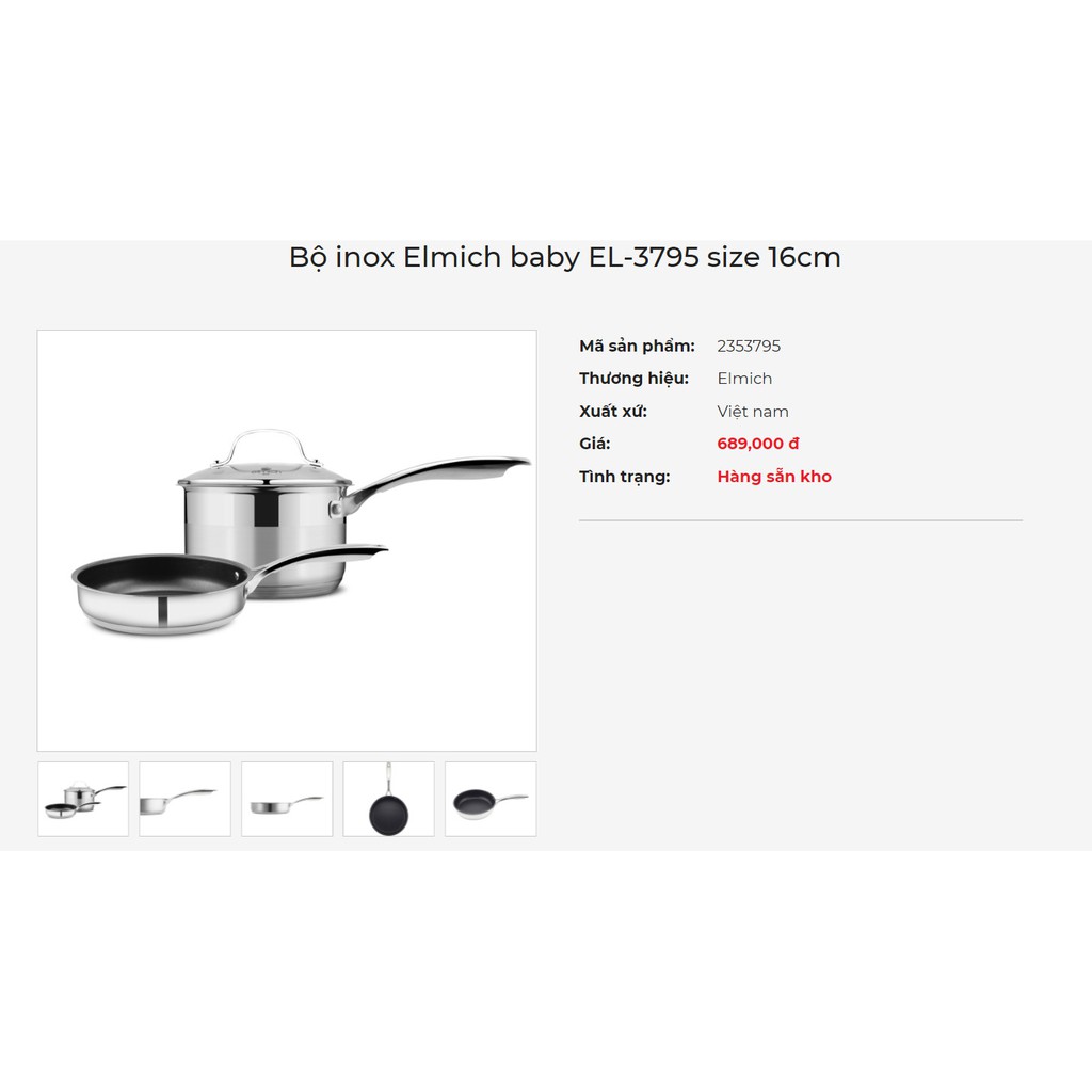 Nhà cửa & Đời sống > Dụng cụ nhà bếp > Nồi || Bộ inox Elmich baby EL-3795 size 16cmCòn hàng