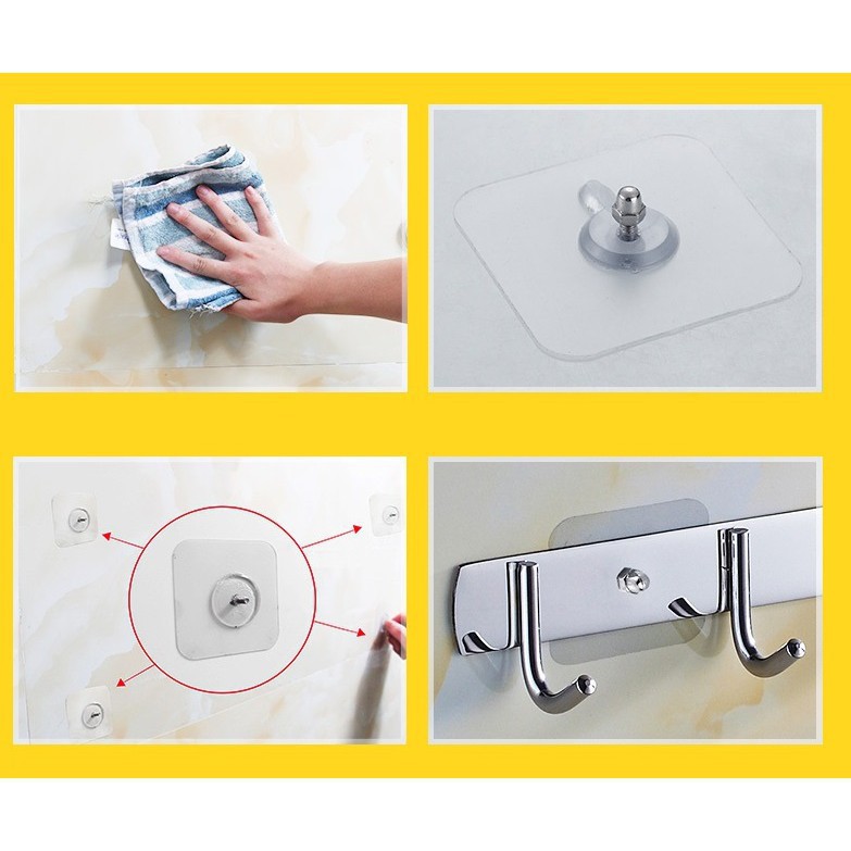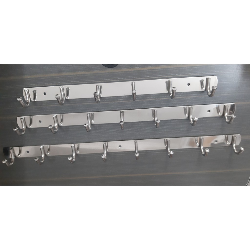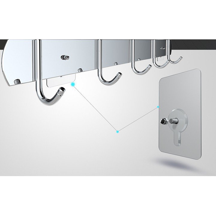- Sản phẩm gồm : 1 thanh treo nhiều móc + dính tường chịu lực + (bộ vít nở nếu bạn muốn khoan)