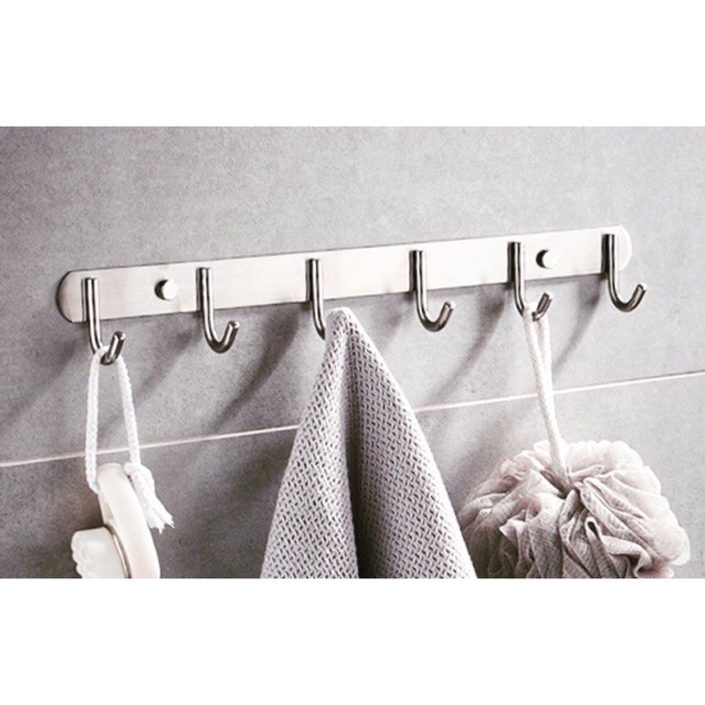 Nhà cửa & Đời sống > Dụng cụ chăm sóc nhà cửa > Dây phơi & giá phơi quần áo || Thanh Inox SUS304 treo quần áo tặng kèm miếng dính tường lắp đặt không cần khoan 5 mócCòn hàng