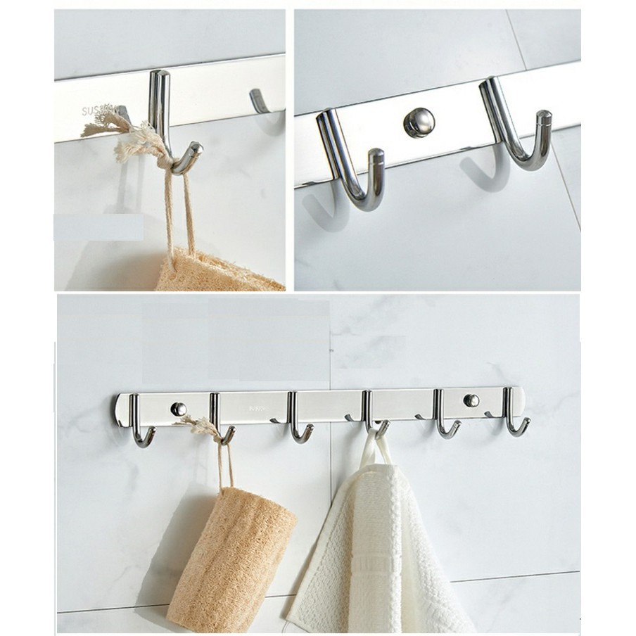 Thanh Inox SUS304 treo quần áo tặng kèm miếng dính tường lắp đặt không cần khoan 5 móc