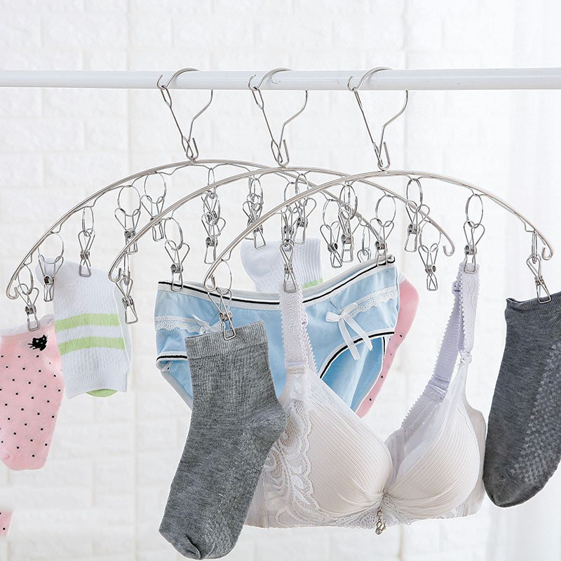 [Inox Tốt- Chống Rỉ] Móc Treo Đồ Inox 8 Kẹp (Phơi Đồ Bé;Đồ Lót;Tất Vớ...Nhanh Khô)