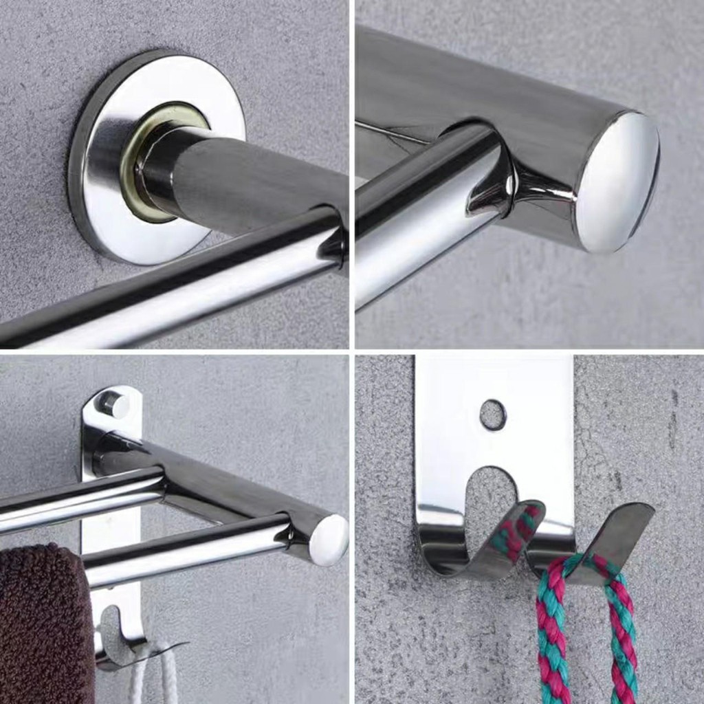 Thanh Inox Treo Khăn Nhà Tắm - Inox 304 Sáng Bóng - 2 Hình Thức Lắp Đặt Là Dán Hoặc Khoan Tường
