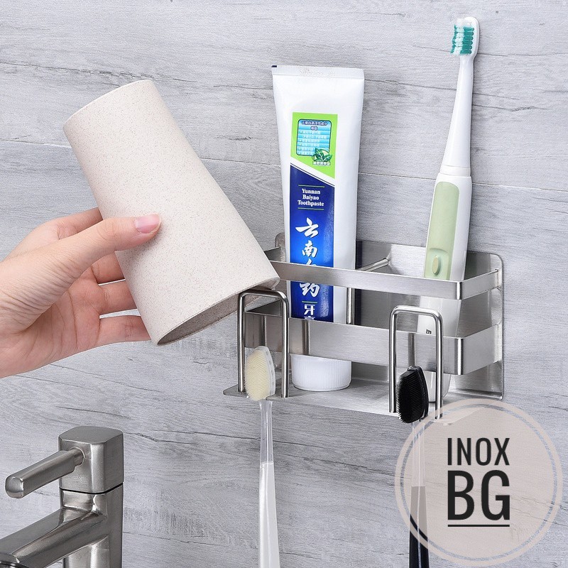 [INOX304] KỆ CẮM BÀN CHẢI, KEM ĐÁNH RĂNG, CỐC DÁN TƯỜNG