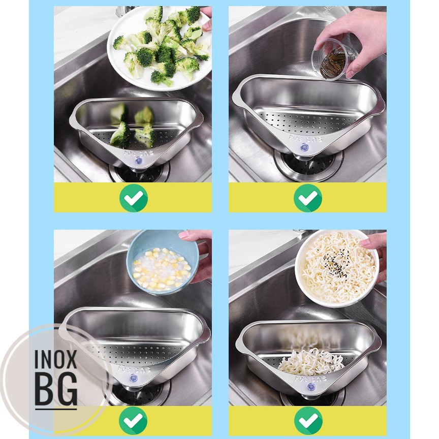 INOX304 Rổ lọc rác góc bồn rửa chén ngăn tắc bồn rửa,không ghê tay | Chất liệu INOX 304 siêu bền,chống hoen gỉ