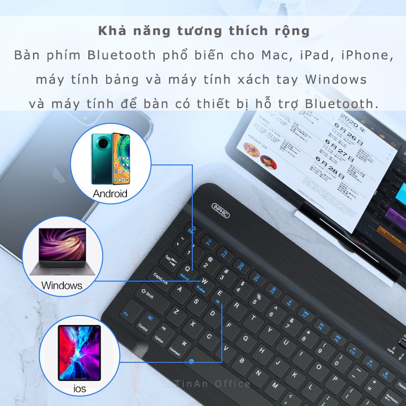 Bàn phím bluetooth phổ biến cho Mac, iPad, iPhone, máy tính bảng và máy tính xách tay Windows và máy tính để bàn có thiết bị hỗ trợ bluetooth.