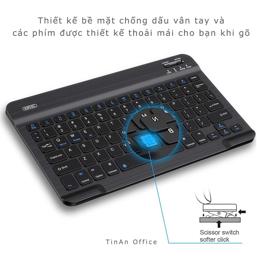 Giới thiệu INPHIC Bàn Phím Không Dây Bluetooth Siêu Mỏng Cho Mac, iPad, iPhone, Máy Tính Bảng Và Laptop Windows, Máy Tính Để Bàn
