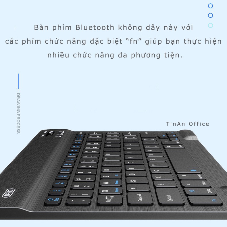 Bàn phím bluetooth không dây này với các phím chức năng đặc biệt “fn” giúp bạn thực hiện nhiều chức năng đa phương tiện.