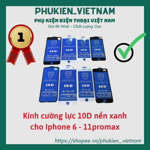 Điện Thoại & Phụ Kiện > Phụ kiện > Miếng dán màn hình || [ iphone 6 đến iphone 11 Pro Max ] Kính cường lực 10D nền xanh full màn nguyên khốiCòn hàng