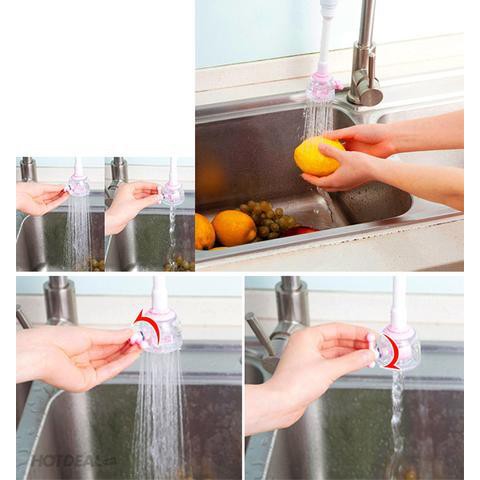 - Vòi nước trong suốt xoay 360 độ là vật dụng dùng kèm hỗ trợ cho vòi nước nhà bạn với thiết kế hàng chục lỗ nhỏ phun nước giúp bạn rửa thức ăn, đồ dùng sạch hơn và tiết kiệm lượng nước sử dụng hơn.