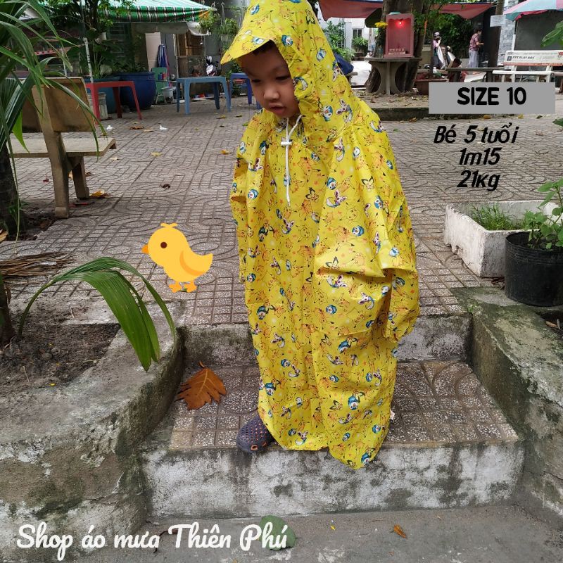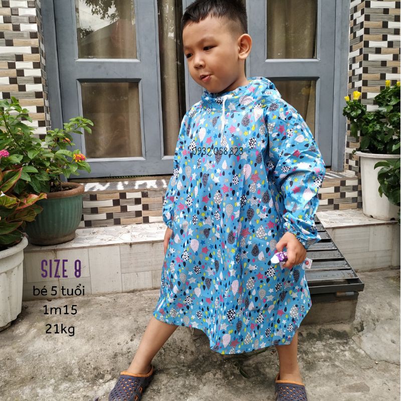 Áo mưa bít trẻ em, chất liệu vải dù, hoa văn hoạt hình cho bé - Size 9 - Size 10