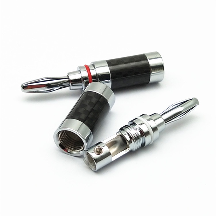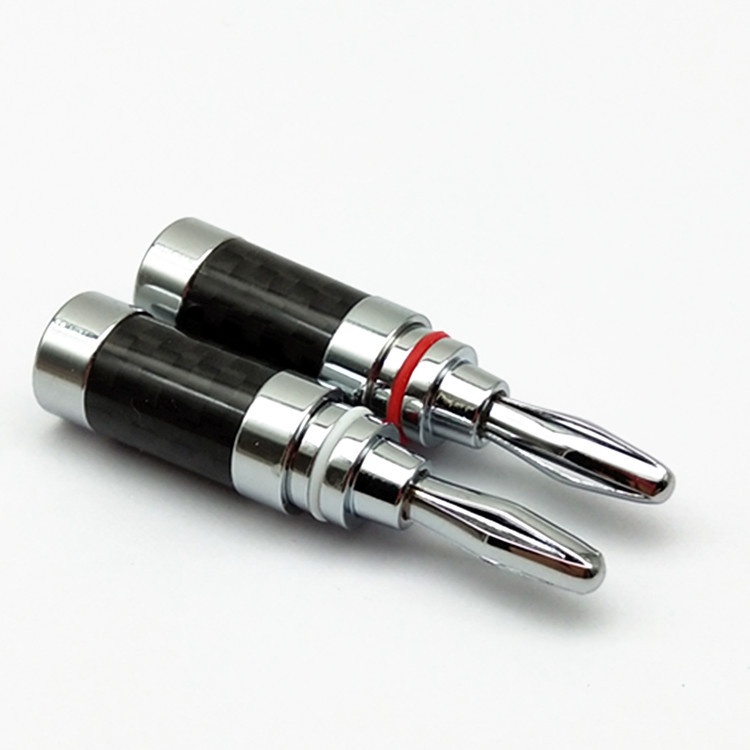 – Jack bắp chuối vỏ mạ carbon 4mm, chân tiếp xúc đồng mạ bạc dùng để kết nối cho hệ thống âm thanh từ thiết bị xử lý tín hiệu đến các thiết bị nhận như loa, các bộ xử lý, cục đẩy ,... hiện nay jack bắp chuối đượng sử dụng rất rộng rãi trong hệ thống âm thanh từ gia đình đến hội trường, từ hệ thống âm thanh cỏ đến các hệ thống âm thanh cao cấp HIFI của các dân chơi. Các jack bắp chuối hiện nay được thiết kế với tiếp xúc nhiều nhất và chặt nhất giúp cho âm thanh giữ được những tín hiệu quan trọng khi đi qua jack bắp chuối này.