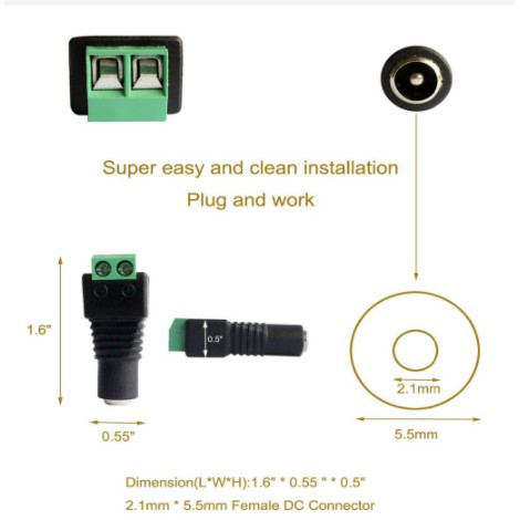 Cặp đầu cắm và lỗ cắm 2.1mm x 5.5mm chất lượng cao dành cho CCTV CameraChi tiết sản phẩm: