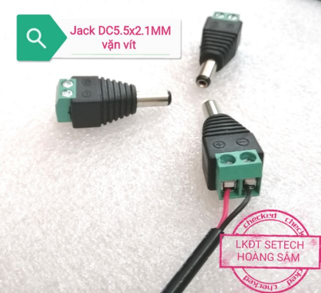 * Jack cắm nguồn DC5.5x2.1mm loại cài dây vặn vít, 2 kiểu đực cái, thường dùng làm đầu dây nguồn cho camera giám sát (dây tín hiệu BNC kèm dây nguồn).* Đầu DC đực lỗ kích thước lỗ 2.1mm, đường kính ngoài 5.0mm có 2 loại: DC5.5.2.1mm đực đầu vàng,DC5.5.2.1mm đực đầu đen.