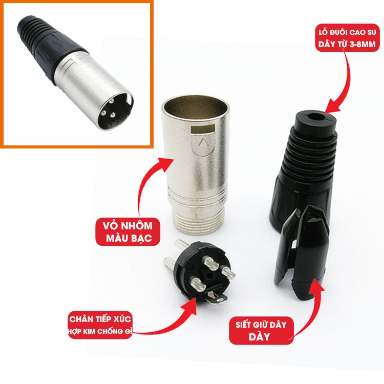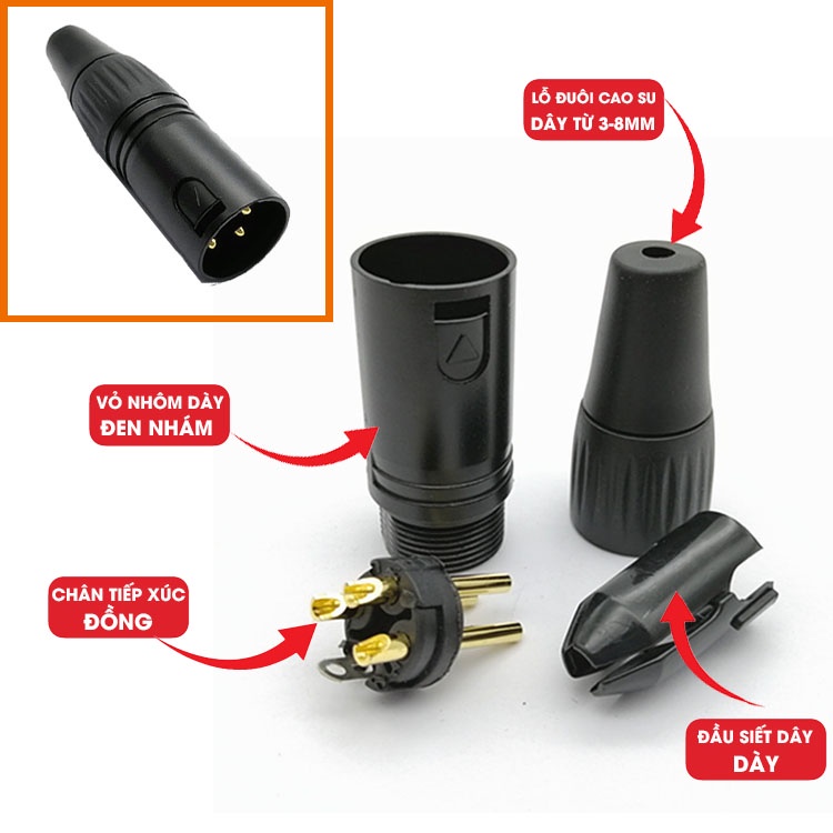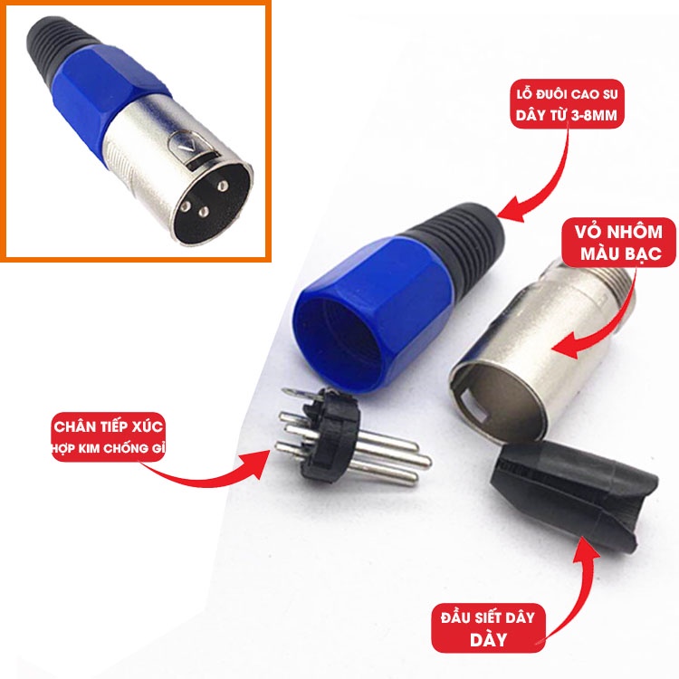 Giới thiệu Jack Canon, giắc XLR đực cái vỏ thép, vỏ nhôm... chân mạ vàng, mạ đồng nhiều loại.