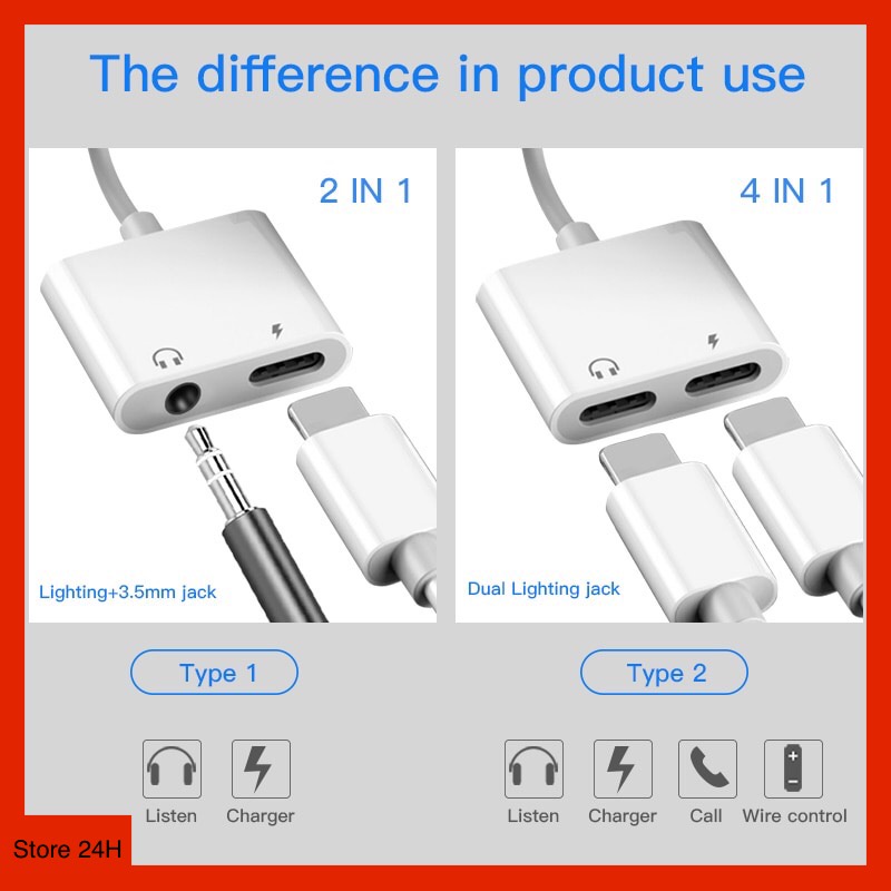 1 Jack chia ra 2 đầu : 1 Lightning + 1 đầu 3.5mm