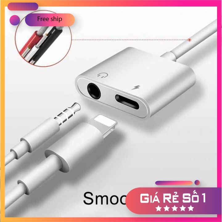 *GIỚI THIỆU SẢN PHẨM*Dây cáp chuyển đổi tai nghe cổng giắc 3.5mm sang chân cắm lightning ip kèm cổng sạc an toàn