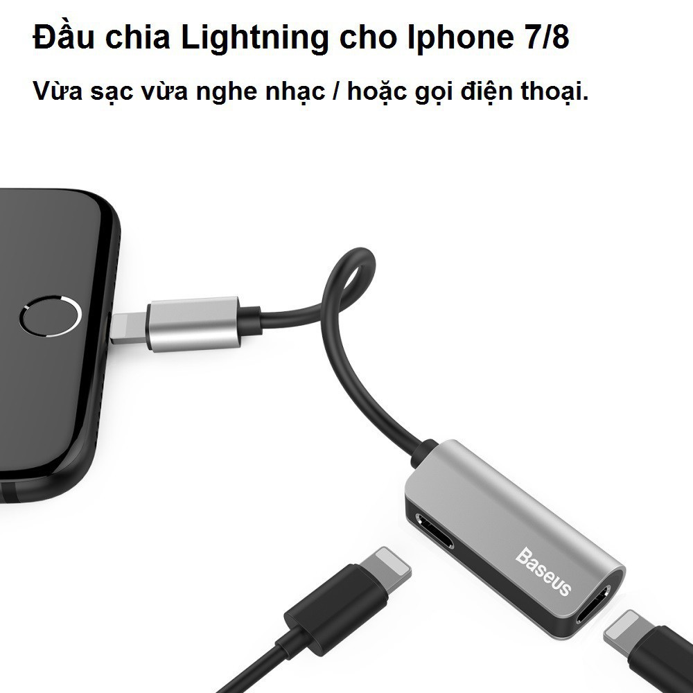 Jack chuyển đổi iphone l37 vừa nghe vừa sạc có mic chia 2 cổng lightning hàng chính hãng baseus cho iphone 7 8 x 11 12