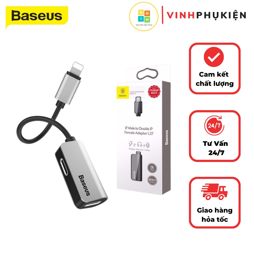 Điện Thoại & Phụ Kiện > Phụ kiện > Cáp, sạc & bộ chuyển đổi > Cáp & Bộ chuyển đổi di động || Jack chuyển đổi iphone l37 vừa nghe vừa sạc có mic chia 2 cổng lightning hàng chính hãng baseus cho iphone 7 8 x 11 12Còn hàng
