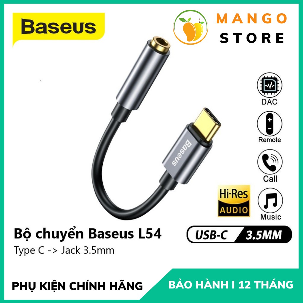 Điện Thoại & Phụ Kiện > Phụ kiện > Cáp, sạc & bộ chuyển đổi > Cáp & Bộ chuyển đổi di động || Jack chuyển đổi tai nghe Type-C sang cổng 3.5mm Baseus L54, Hàng chính hãng BaseusCòn hàng