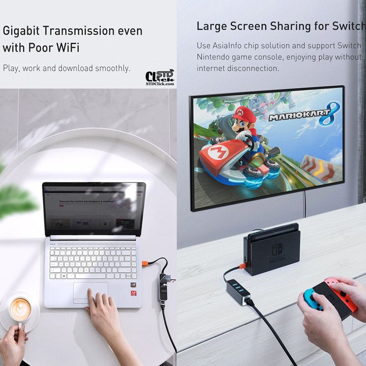 JACK CHUYỂN USB A SANG 3xUSB A và CỔNG LAN RJ45 BASEUS STEEL CANNON CHÍNH HÃNG có tốc độ truyền tín hiệu lên tới 5Gbps, nhanh hơn gấp 10 lần so với USB 2.0, giúp bạn truyền dữ liệu 1 cách nhanh chóng không mất quá nhiều thời gian cho những tập tin lớn, hỗ trợ công việc của bạn một cách tốt nhất, chỉ cần cắm vô thiết bị là sử dụng không cần cài đặt gì vì nó được tích hợp chip công nghệ cao.