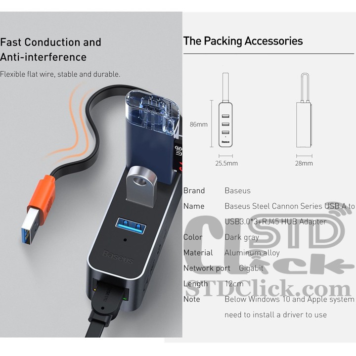 Giới thiệu JACK CHUYỂN USB A SANG 3xUSB A và CỔNG LAN RJ45 BASEUS STEEL CANNON CHÍNH HÃNG HÀNG CHUẨN