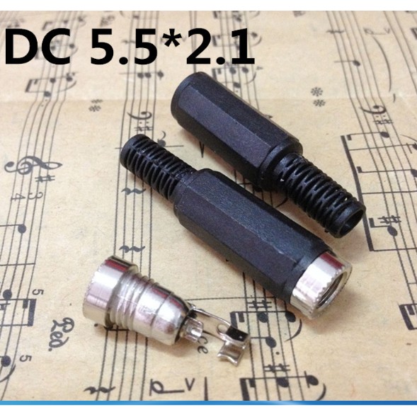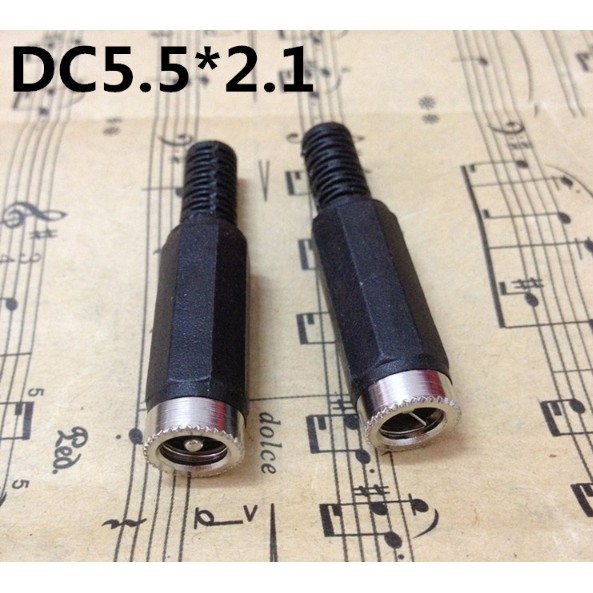 Jack DC 5.5x2.1mm cái kiểu nối dây:- Đầu Jack cắm nguồn DC nối dây kích thước 5.5x2.1mm (đường kính lỗ 2.1mm, đường kính phần kim loại 5.5mm) loại Jack cái.