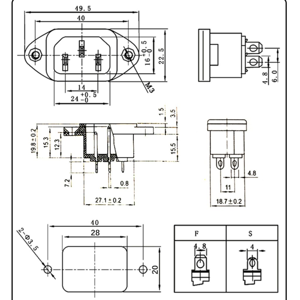Jack nguồn AC ✌ FREESHIP ✌ ổ cắm dây điện 3 chấu chắc chắn AC-04thông số kỹ thuật: