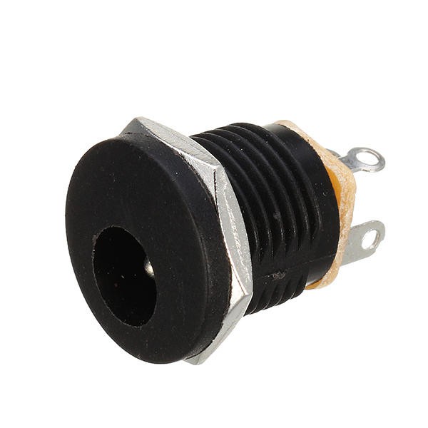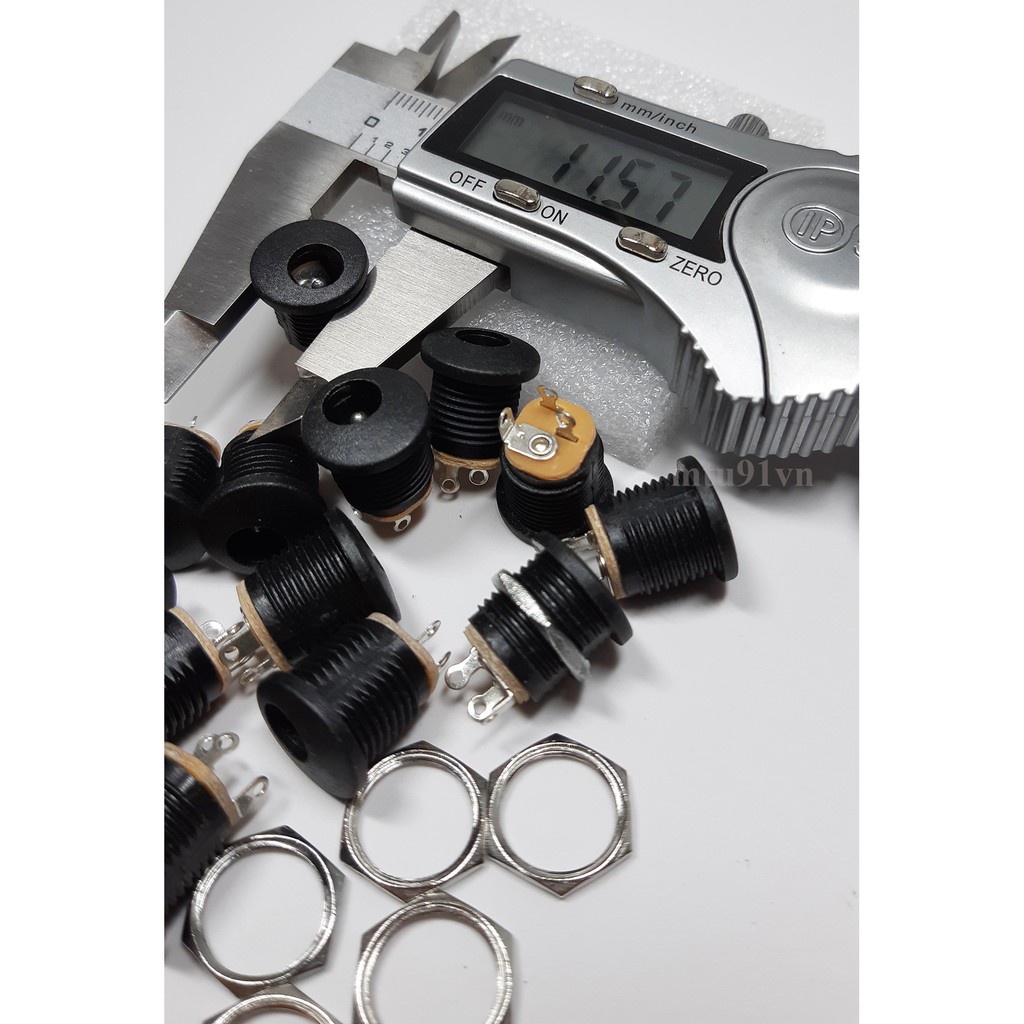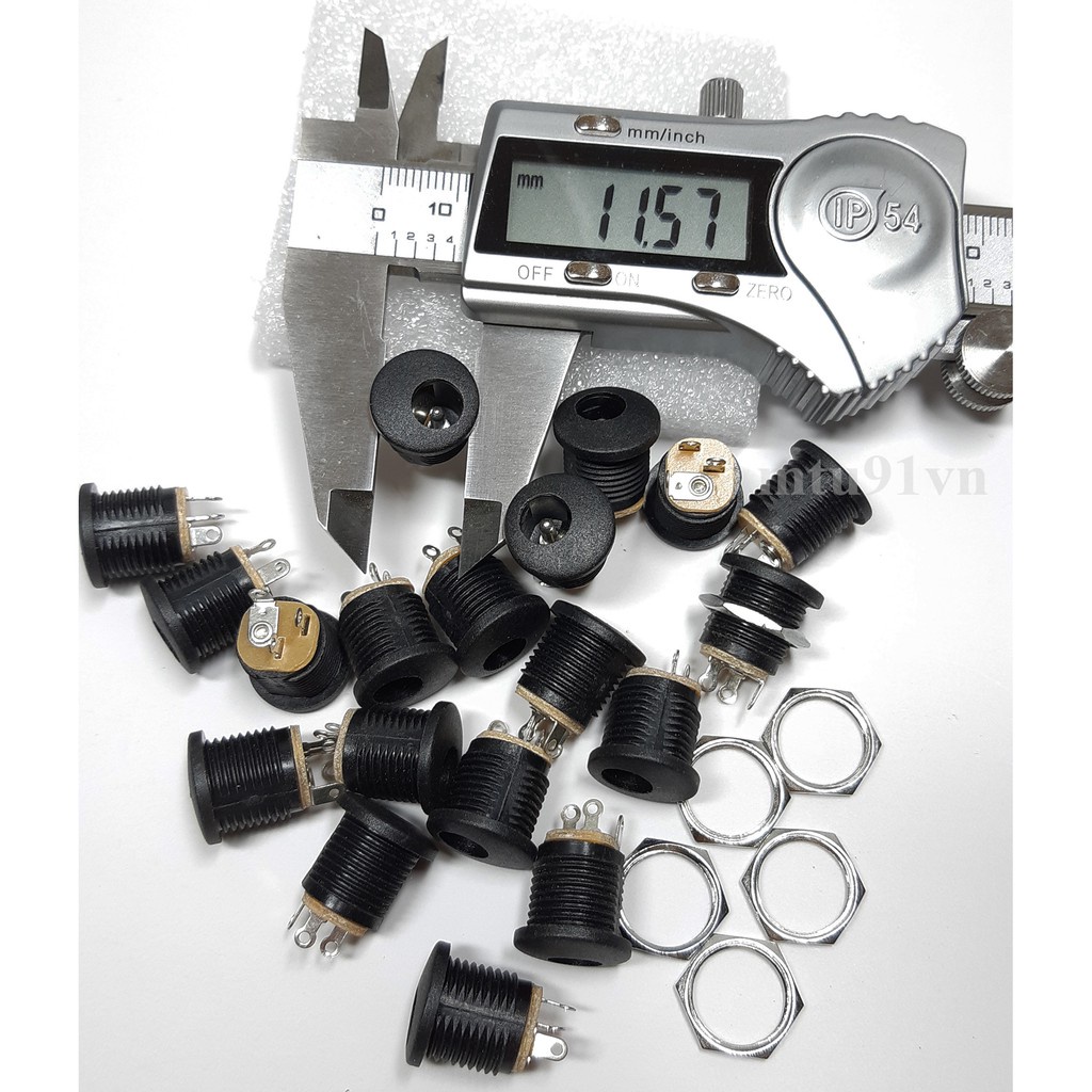 Jack Nguồn Chân Cắm nguồn DC cái có ốc vặn ren bắt vỏ 5.5x2.1mm* Chân nguồn, jack nguồn DC 002, mặt đen tròn, lỗ tròn bắt vỏ hộp làm chân cấp nguồn DC, chân sạc v.v. đường kính khoét lỗ M12 (phi 12), có ốc ren bắt cố định mặt vỏ.