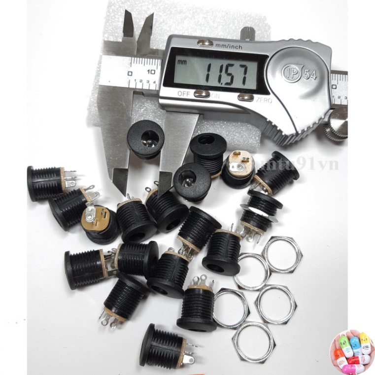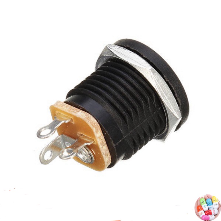 * Chân nguồn, jack nguồn DC 002, mặt đen tròn, lỗ tròn bắt vỏ hộp làm chân cấp nguồn DC, chân sạc v.v. đường kính khoét lỗ M12 (phi 12), có ốc ren bắt cố định mặt vỏ.