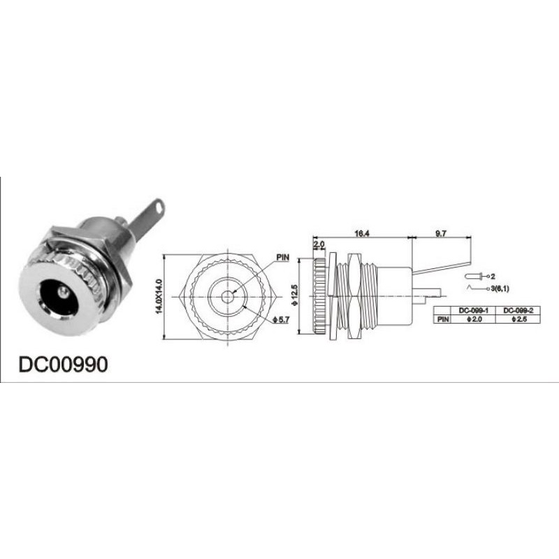 JACK nguồn DC-099 Kim loại có nắp đậy cao su:- Chuẩn Jack DC: 5.5 x 2.1mm