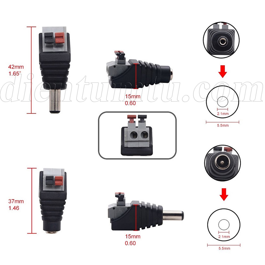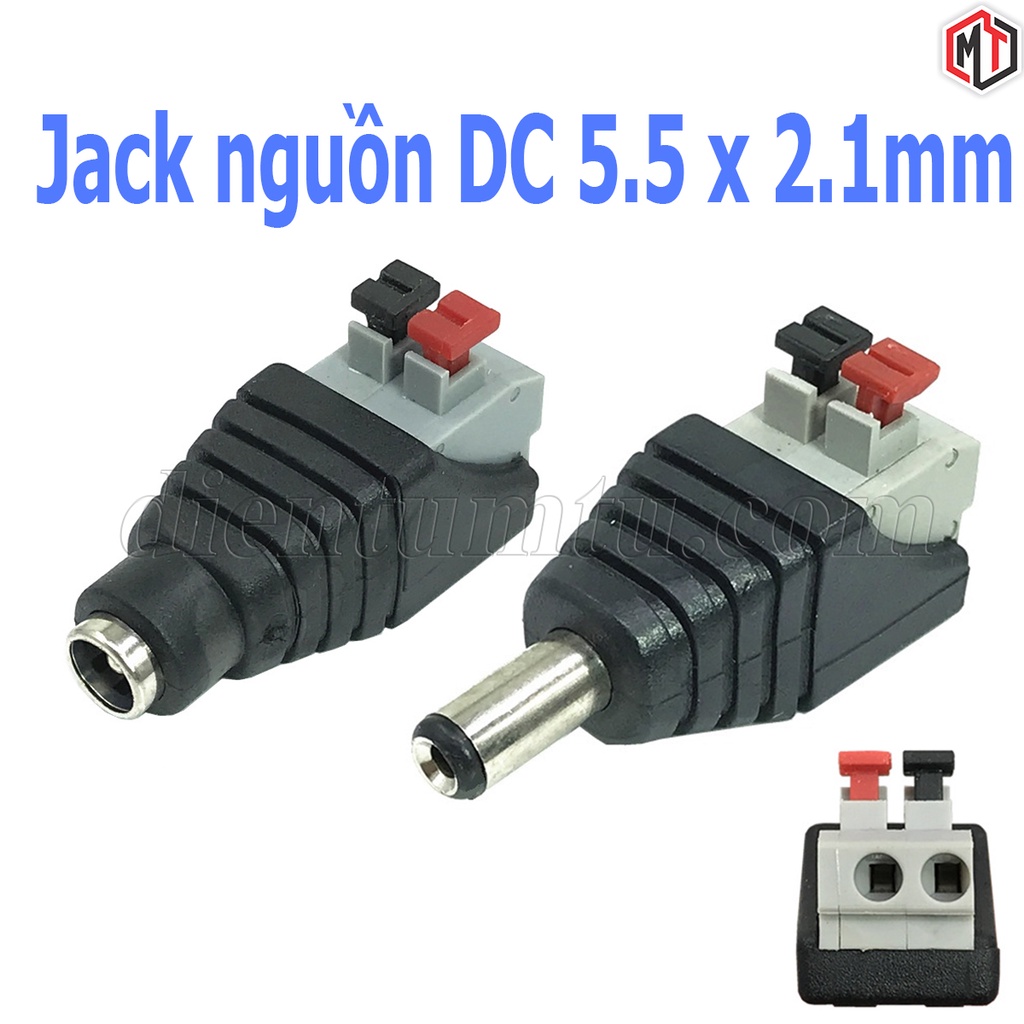 Chân nguồn DC 5.5x2.1 đực (Header kẹp) Đầu jack nguồn 5.5mm được thiết kế đầu kẹp dây tiện lợi, giúp giảm thời gian đấu nối hệ thống nguồn, dễ dàng kiểm tra, sửa chữa thay thế khi cần thiết. ...- Đường kính ngoài: 5.5mm