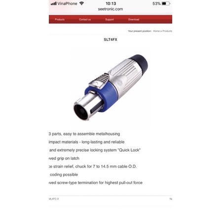 Giới thiệu Jack rắc loa speakon vít, Hàn nhập khẩu hãng SEETRONIC.