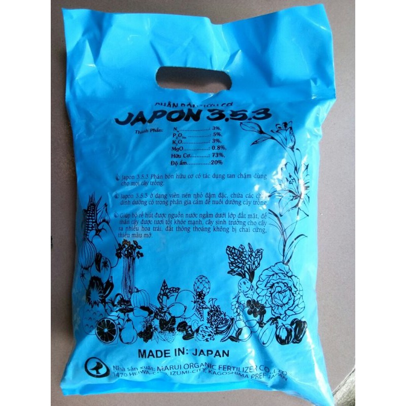 + Phân Hữu Cơ Japan 3.3.3 là thức ăn nuôi dưỡng cho cây trồng thông qua bộ lá & bộ rễ+ Sử dụng trên các loại cây ăn trái ,rau màu,hoa kiểng,cây công nghiệp và lúa.
