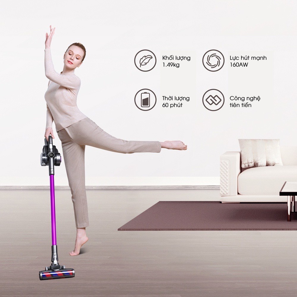 Đặc điểm nổi bật:- Thiết kế: trọng lượng nhẹ chỉ 1.49kg, dễ dàng mang theo và di chuyển. Cánh tay, ống hút bụi và tấm lót sàn nằm trên cùng một đường thẳng trong quá trình làm sạch, tiết kiệm công sức hơn trong quá trình làm sạch.