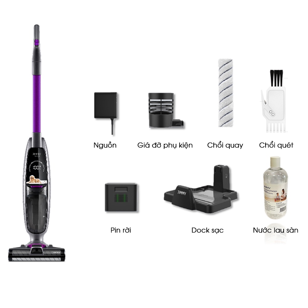 Máy hút bụi lau nhà cầm tay không dây có khử khuẩn UV tự động giặt Quốc Tế JIMMY HW8 PRO / HW8BH 12 tháng