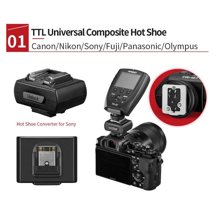 👉: Điều này cho phép bạn vận hành các đèn flash phóng viên và studio Jinbei khác nhau với TR-Q7 và đồng bộ hóa chúng với hệ thống Sony hoặc máy ảnh SLR của bạn.