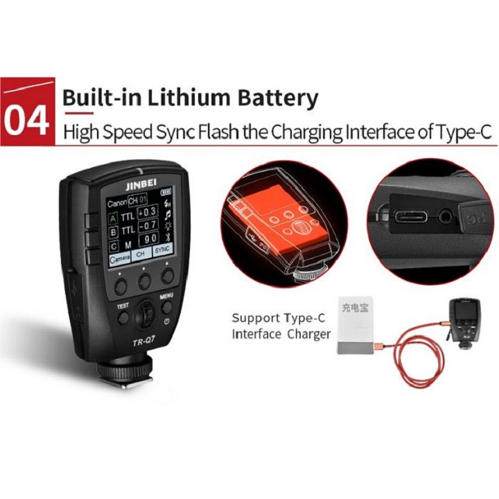 👉: Điều này cho phép bạn vận hành các đèn flash phóng viên và studio Jinbei khác nhau với TR-Q7 và đồng bộ hóa chúng với hệ thống Sony hoặc máy ảnh SLR của bạn.